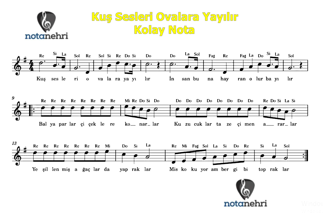 Bu yazımızda Kuş Sesleri Ovalara Yayılır adlı çocuk şarkısının do,re,mi ve kolay notalarını paylaştık. Şarkının...