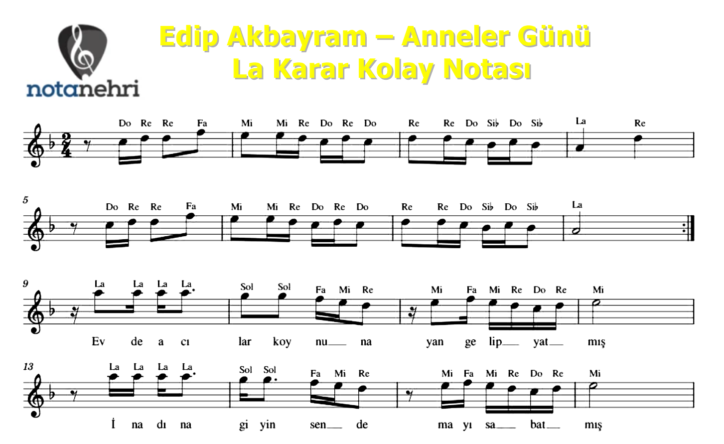 Bu yazımızda Edip Akbayram‘ın sevilen Anneler Günü şarkısının do,re,mi ve kolay notalarını paylaştık. Şarkının bestesi...