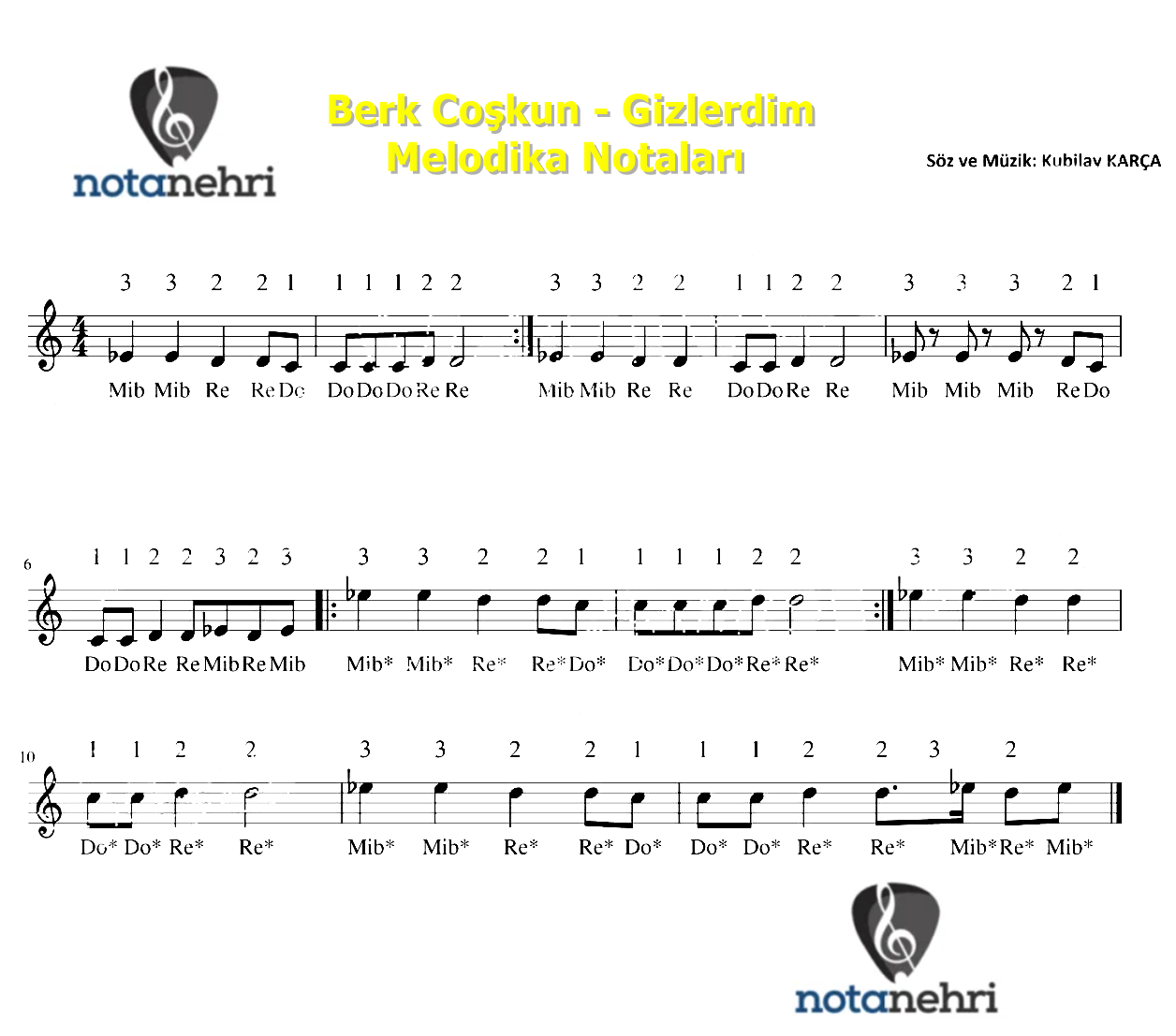 BERK COŞKUN‘un seslendirdiği uzun süre 1 numarada kalan GİZLERDİM şarkısı melodika notalarını sizler için ekledik....
