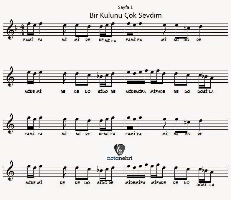 Bir Kulunu Çok Sevdim, O Beni Hiç Sevmiyor..Bu değerli eserin nota ve sözleri bu şekildedir.Ayrıca Müslüm Gürses‘ten de dinlemenizi öneririz.Yorum kısmından yorumlarınızı merakla bekliyoruz.İyi çalışmalar dileriz.