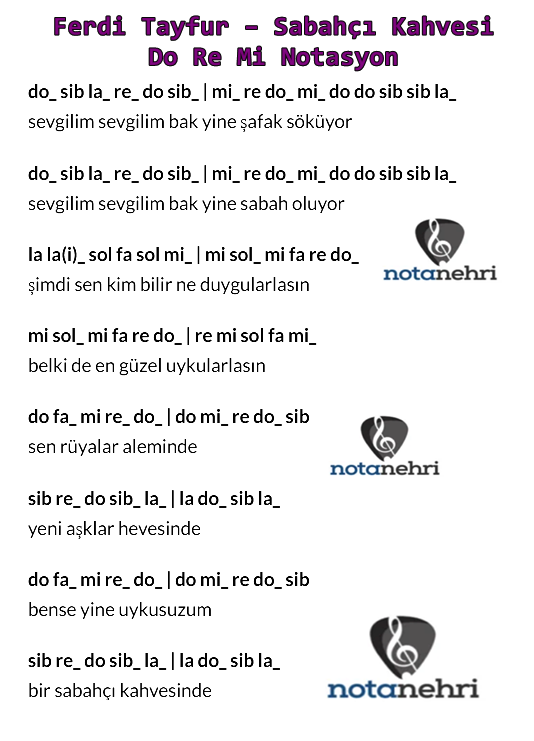 Ferdi Tayfur – Sabahçı Kahvesi Do,Re,Mi Notasyon PDF Dosyası