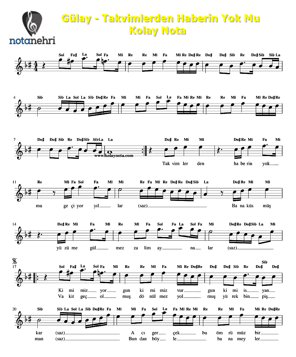 Bu yazımızda sevilen şarkıcı Gülay‘ın sesinden tanıdığımız Takvimlerden Haberin Yok Mu şarkısının standart notasını ve...
