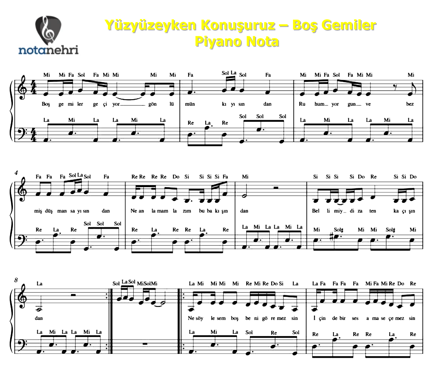 Bu yazımızda Yüzyüzeyken Konuşuruz grubunun sevilen Boş Gemiler şarkısının piyano notalarını paylaştık. Şarkının söz ve...