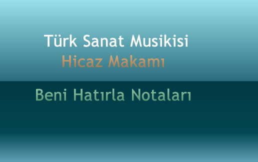 Bestekarı Nihat İncekara olan Hicaz makamında olan Beni Hatırla isimli eserin notaları aşağıdaki gibidir.